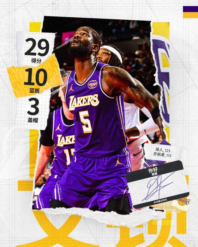 東契奇引領(lǐng)湖人6人得分上雙戰(zhàn)勝熱火,外加里夫斯26分11助攻,他們組成強(qiáng)力后場(chǎng)雙槍。至于拉拉維亞打出加盟湖人最強(qiáng)一戰(zhàn),他13中10高效得到25分8籃板3助攻。
